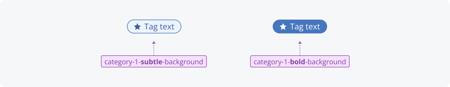 Category provides a set of 20 numbered groups. These groups don't have predefined meanings, so you can assign significance locally, such as for tagging content or organizing data visualizations. Each category is represented by a number to avoid implying any system-level meaning or color, since colors may change across themes and modes.
